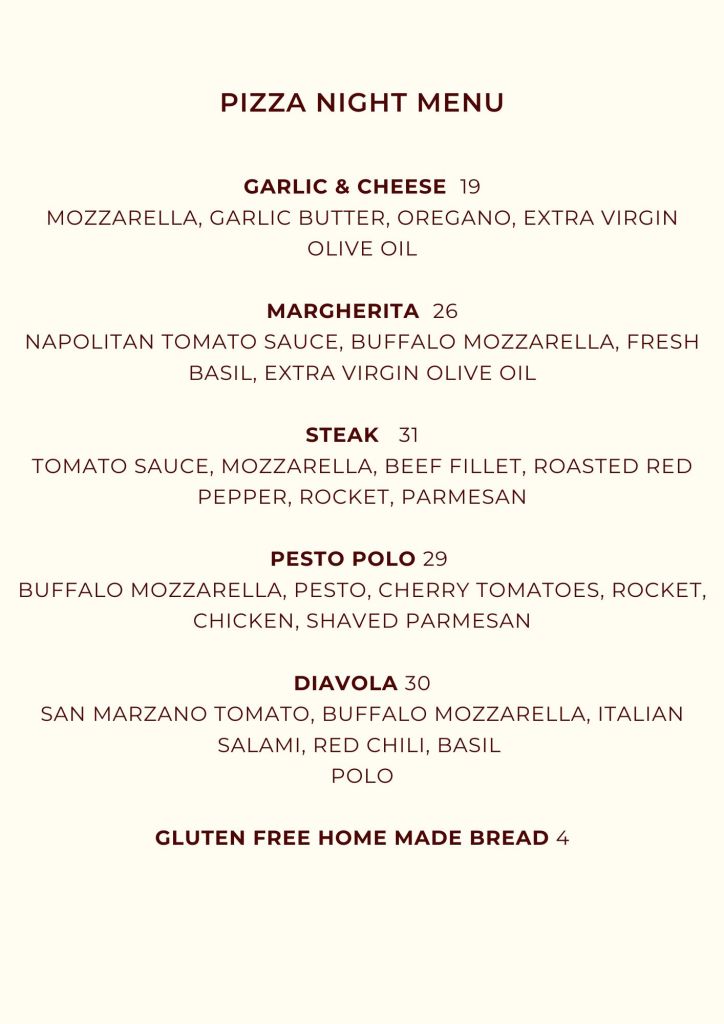 Pizza Night Menu